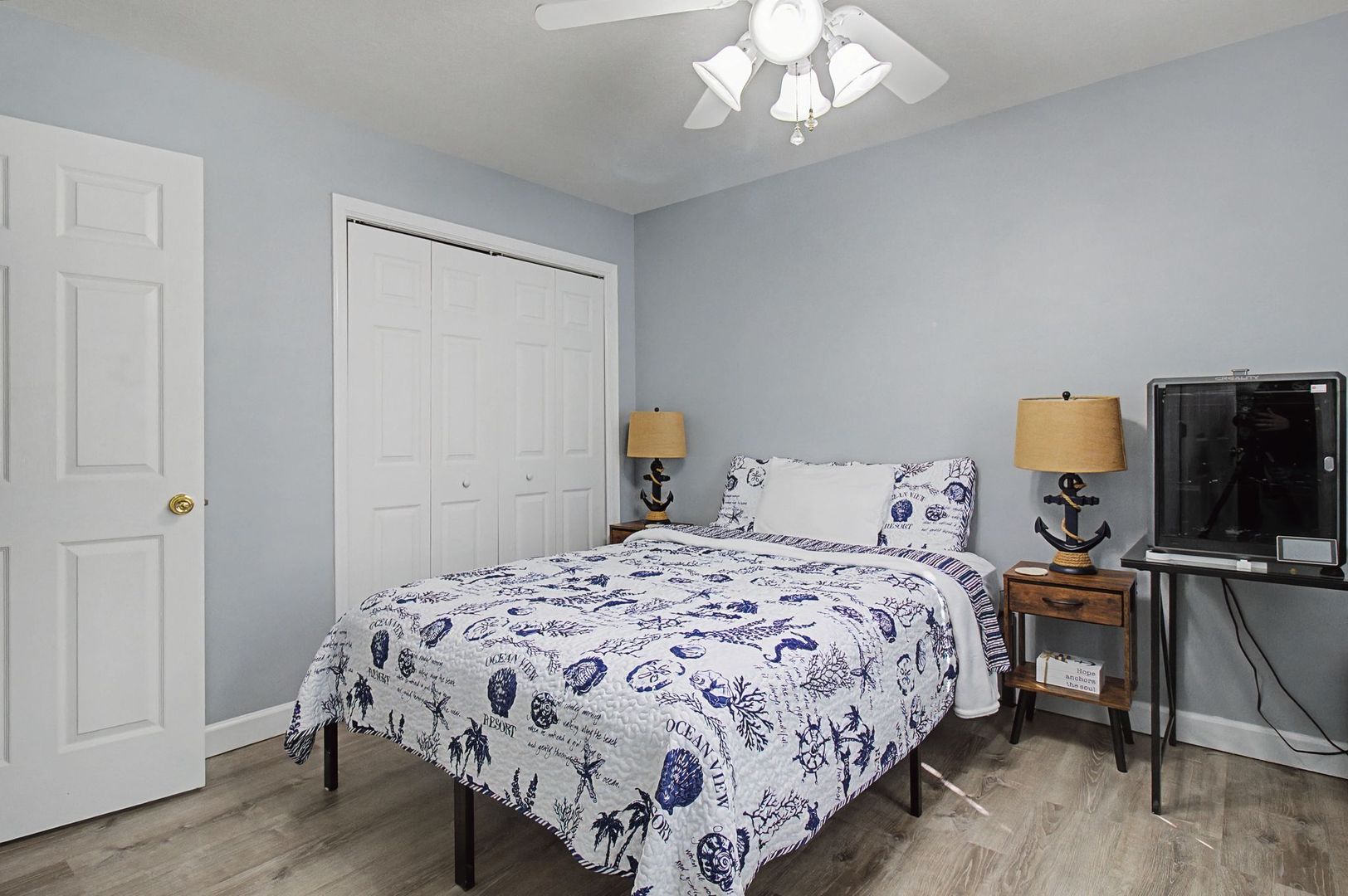 The spacious primary suite also offers a custom-designed walk-in closet with built-in storage, while ceiling fans in every room keep the home comfortable year-round.
